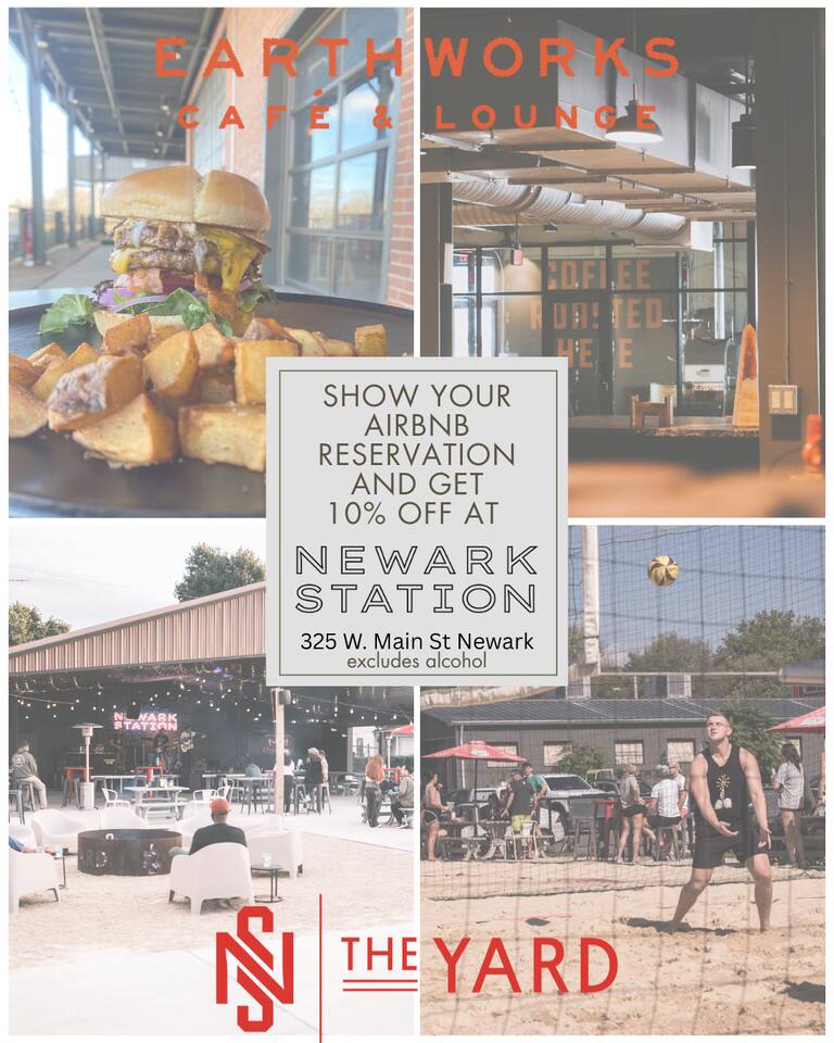 *Walkable attractions: Midland Theatre, The Works Museum, 31 West Music Venue, Canal Market District *Local drivable attractions: Moundbuilders Park, Flint Ridge Park, Kayak down the Licking River, Black Hand Gorge, Newark Station. Enjoy our miles of bike trails